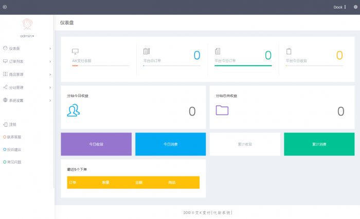已对接艾K支付,可开通分站代理功能,后台订单自助管理!