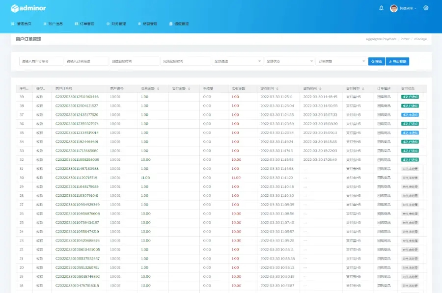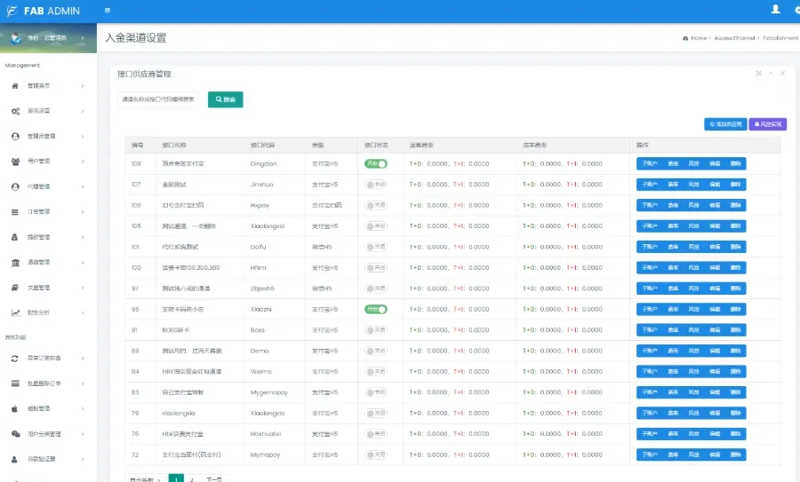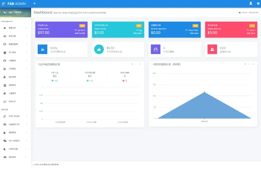 帐号类型:系统后台多类型管理员、商户代理、普通商户、接口用户;对用的板块后台都不一样相关的数据统计齐全有效。