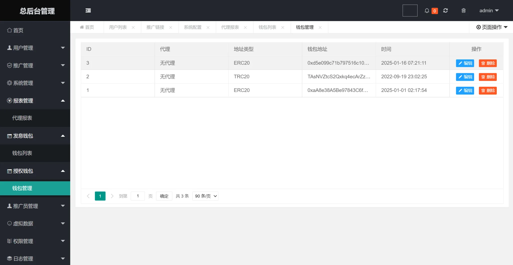 打开后台 系统管理 系统配置 修改 网站地址 改成自己的 TRX ETH 收款地址和私钥设置好 要不然前台授权了你盗不走U 然后 推广管理 推广链接 是盗u前台